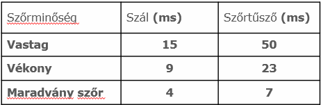 – Kezeletlen szőr: finom 20 ms, vastag 50 ms